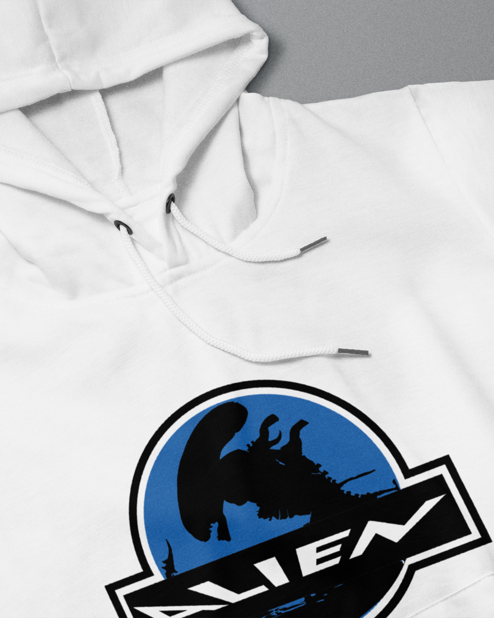 Keywords: heavyweight alien movie pullover hoodie, DIYANYONE original sci-fi horror sweatshirt, xenomorph graphic hooded top, retro cinematic fan apparel, classic monster movie hoodie