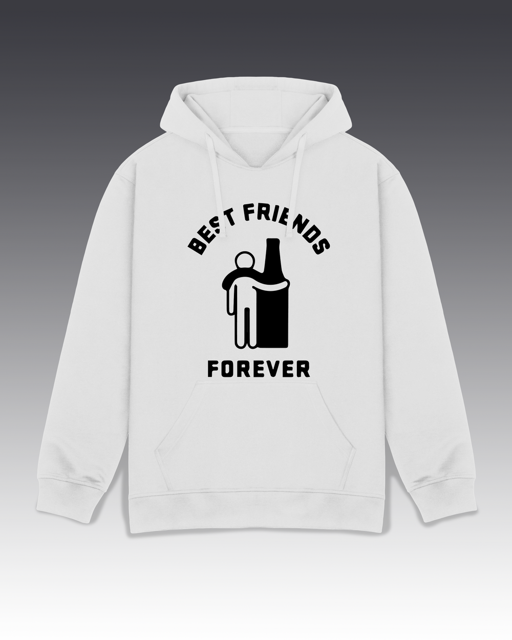 Stay cozy with your true best friend in this Original DIYANYONE Cotton Blend Hoodie. This premium, heavyweight pullover displays the iconic "BEST FRIENDS FOREVER" graphic, featuring the humorous stick figure and bottle design. The design provides exceptional warmth and is ideal for casual outings or parties, offering a funny and relatable bar culture statement. It’s a comfortable, conversation-starting piece for those who appreciate sharp, self-aware humor.