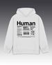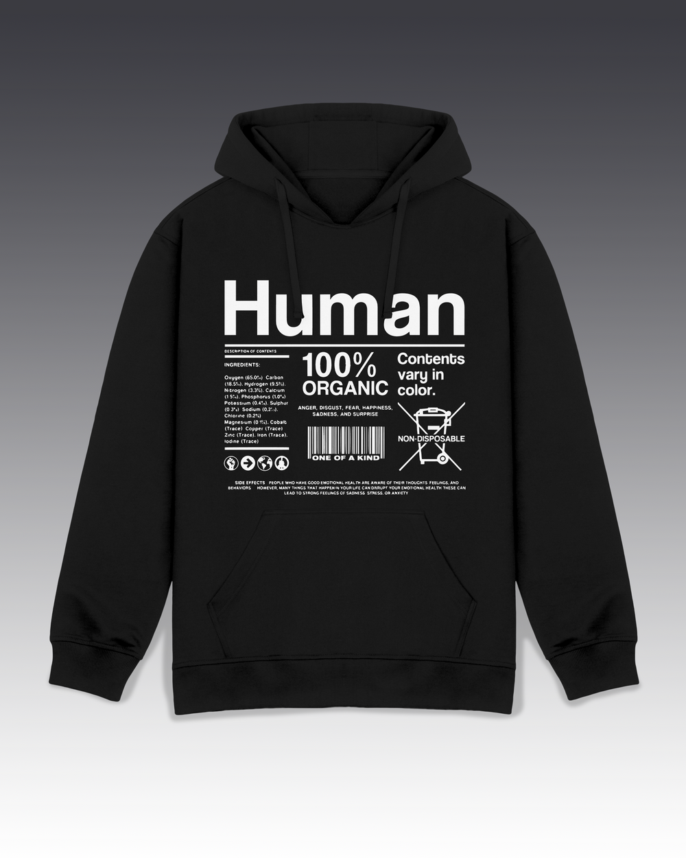 Keywords: heavyweight human 100% organic pullover hoodie, DIYANYONE original sarcastic label sweatshirt, existential humor graphic hooded top, conceptual statement apparel, thought-provoking irony hoodie