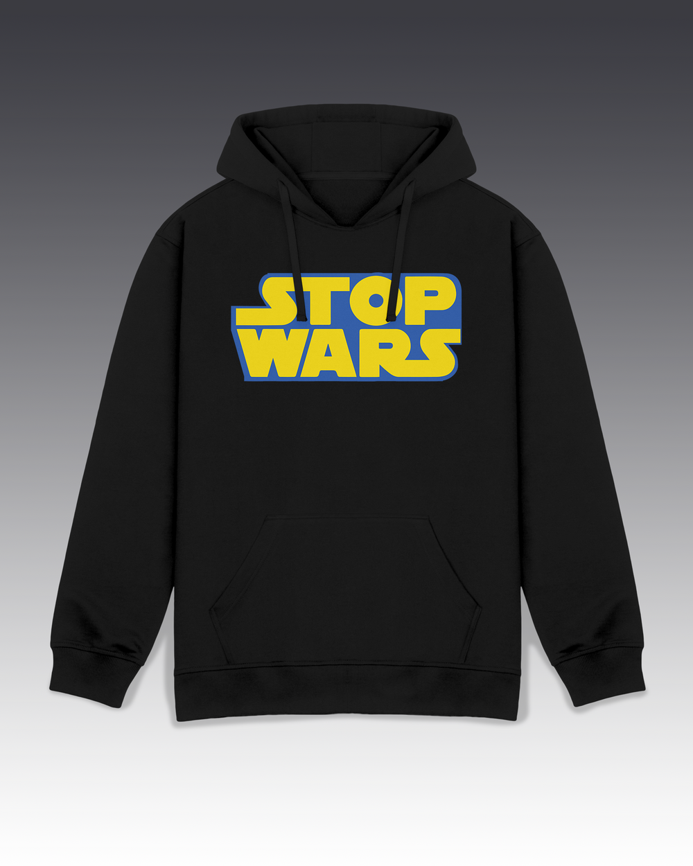 Keywords: heavyweight stop wars pullover hoodie, DIYANYONE original anti-war sci-fi sweatshirt, star wars parody graphic hooded top, peace activism apparel, nostalgic pop-culture hoodie